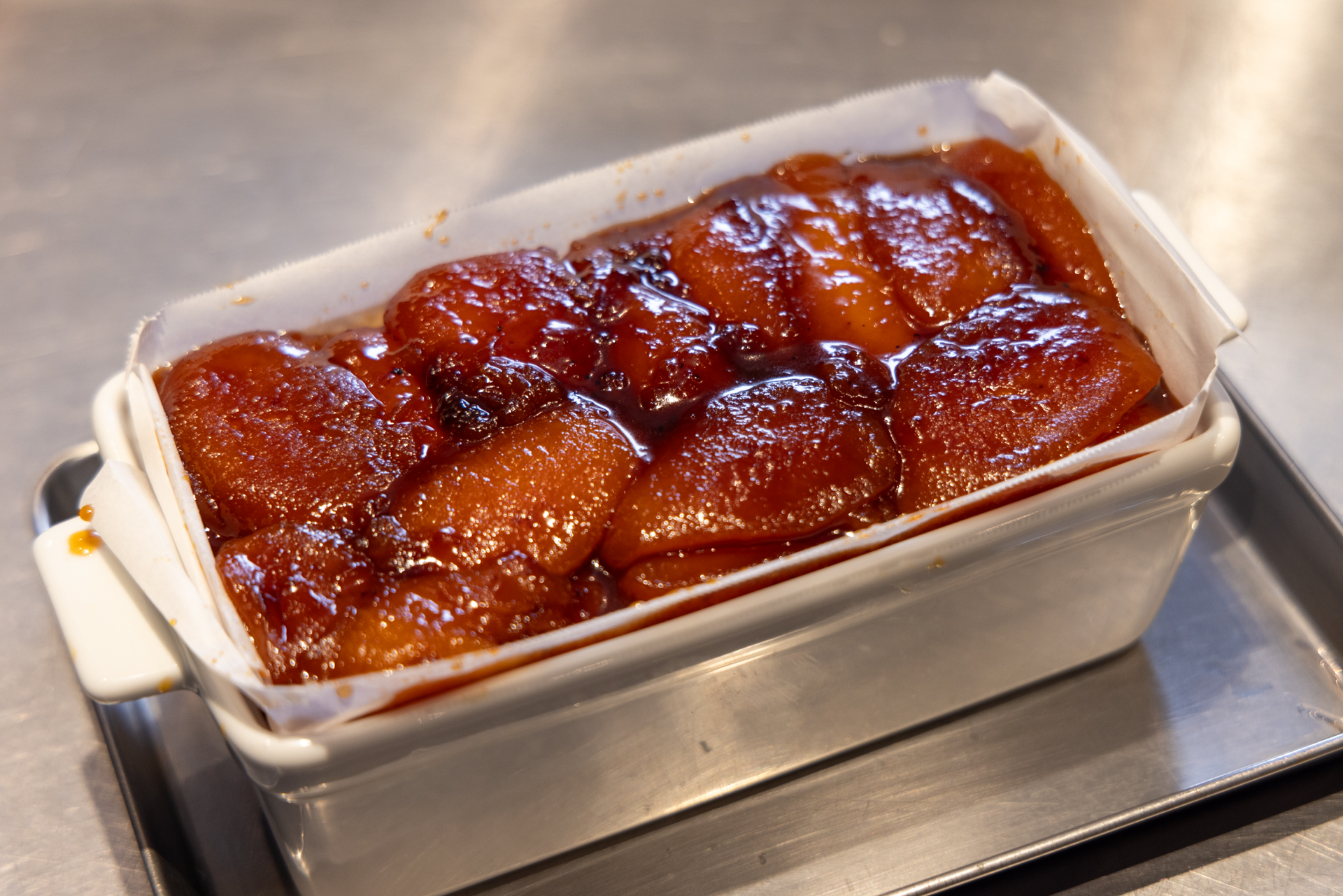 通常のアップルタルトとは製法が真逆なんですよね。普通なら生地を下に敷いてからフィリングを乗せるところを、あえて逆さまに作る。この「逆さまタルト」という発想が、実に革新的です。
