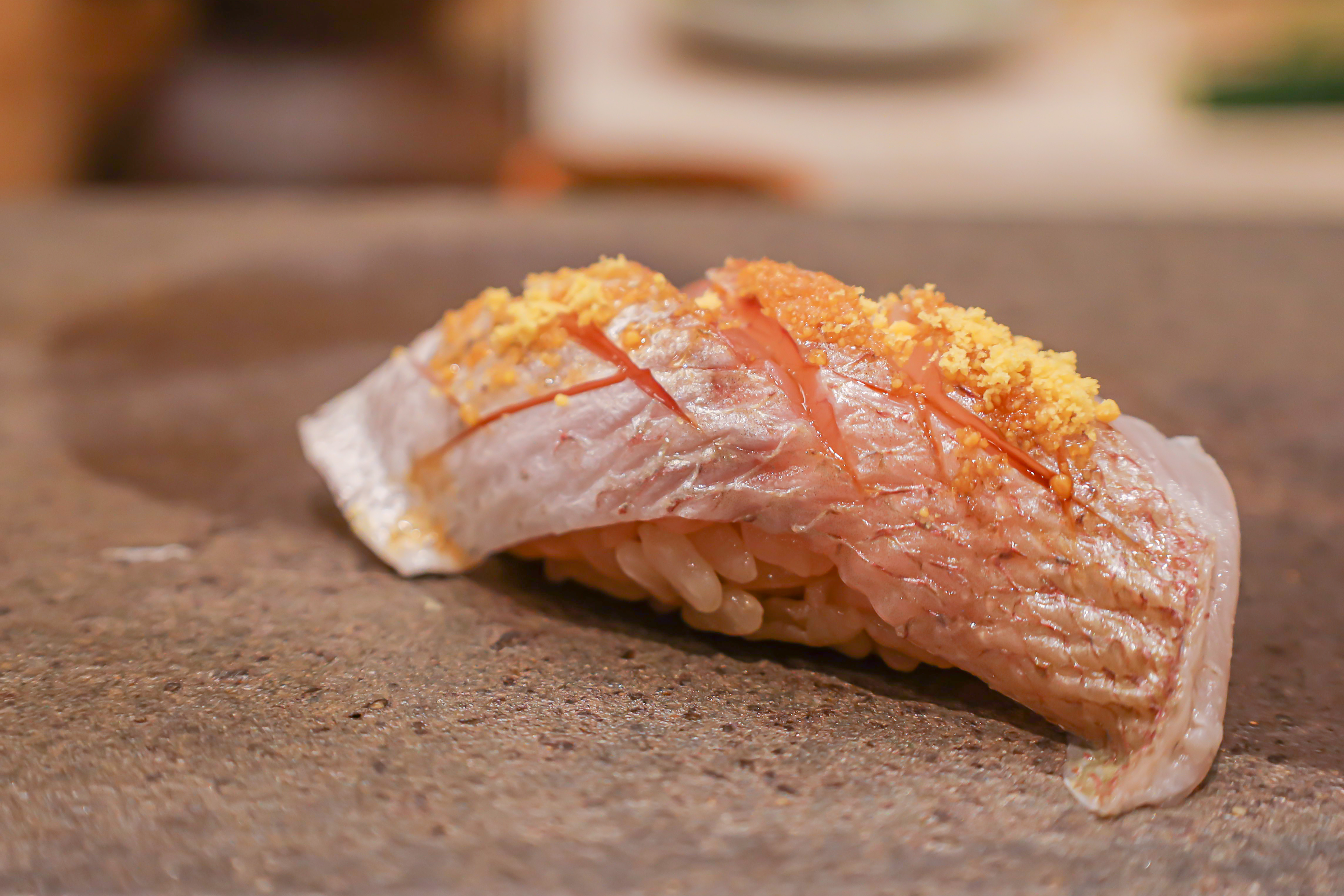 このように美しくも繊細な春子鯛を、寿司ネタとして成立させるには相応の工夫が求められます。