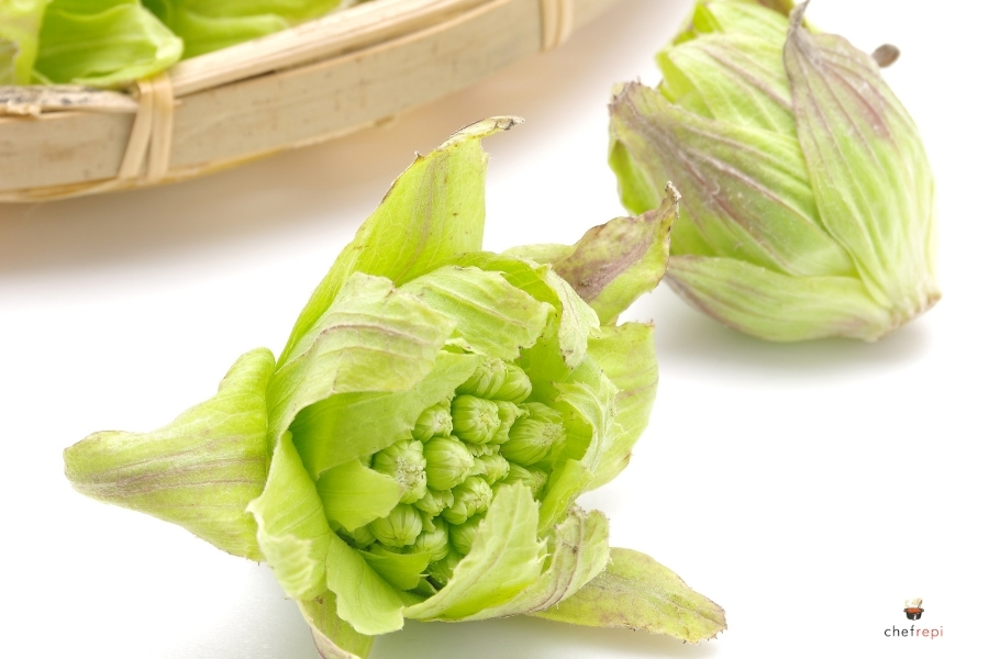 淡色野菜に分類され、カルシウム、マグネシウム、ビタミンA、ビタミンC、食物繊維などを含みます。ミネラル類はフキと同程度、食物繊維はフキの2倍あるとされ、肉の消化を助ける酵素も含まれているため、ハーブとしても注目されています。