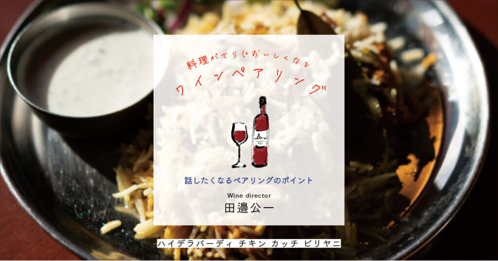 その他にも、この料理の中でひときわ存在感を放つ存在として、ホールスパイスとアニスがあります。このスパイスとアニスのフレーヴァーに同調できるのは、アロマティックなタイプの品種で、なおかつスパイスやアニスで有名な暖かい土地で育まれるブドウから造られたワイン。さらにはさまざまなスパイスと相性の良いまろやかな果実味とミルキーな味わいを持つワインを連想しました。